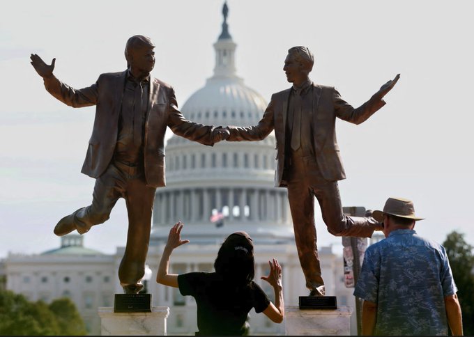 Escultura de Trump y Epstein aparece en el Capitolio