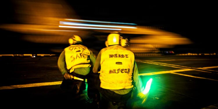 En este contexto, el portaaviones Gerald Ford llevó a cabo operaciones aéreas nocturnas en la región.