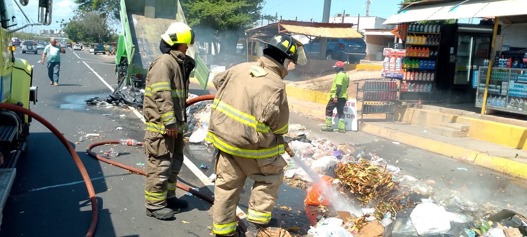 Efectivos del Cuerpo de Bomberos de Maracaibo realizaron una exitosa maniobra en la Circunvalación 1 para extinguidir un incendio que se produjo en la tolva de un camión recolector de basura. La emergencia fue reportada a la Dirección General de Seguridad Ciudadana alrededor de las 10:50 a.m., cuando se activó la alarma sobre las llamas generadas en la carga de desechos del vehículo que transitaba en una de las principales vías de la ciudad.